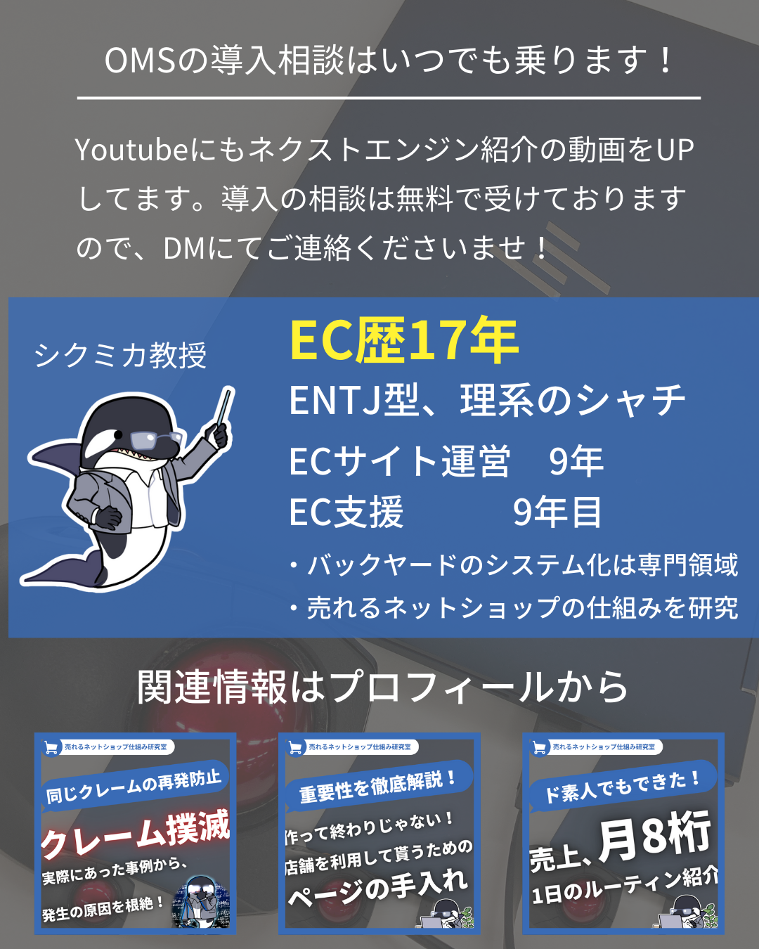 ECサイトの更新(手入れ)だと、来てくださるお客様になります。